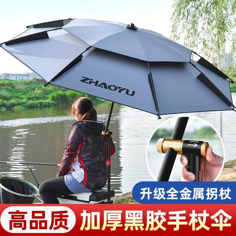 户外新款拐杖钓鱼伞万向大钓伞加厚黑胶手杖雨伞防暴雨防晒遮阳伞