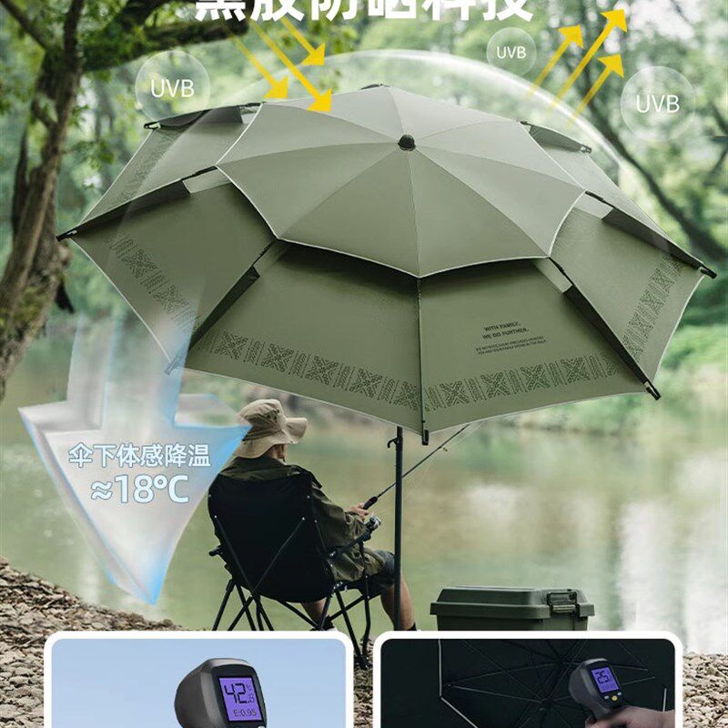 淘钓箱万向钓鱼伞1.8米2.2米2.4双层直杆黑胶两节防晒防雨大钓伞渔