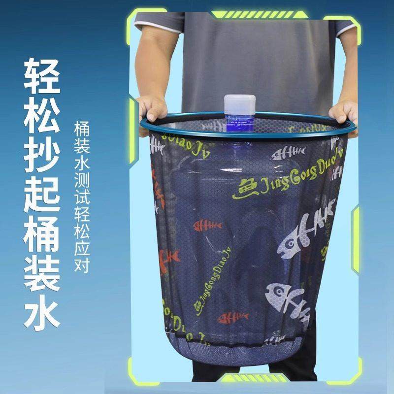 淘可折叠大物抄网可伸缩抄网竿便携钓鱼抄网防挂网兜青鱼鲟鱼捞鱼网