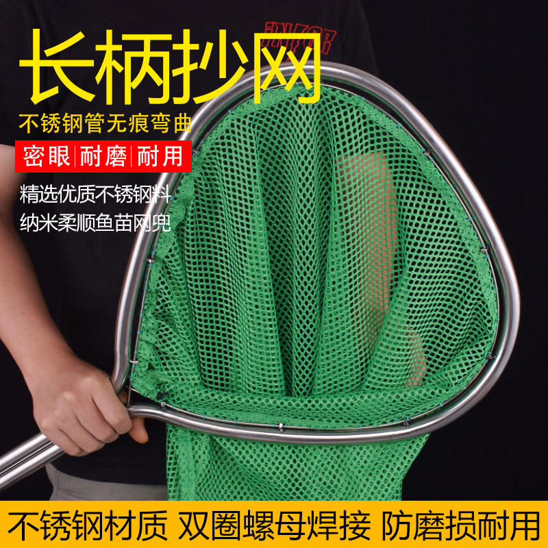 淘30不锈钢平头抄网头捞鱼尼龙网兜鱼池海鲜水产鱼捞网卖鱼抓大鱼