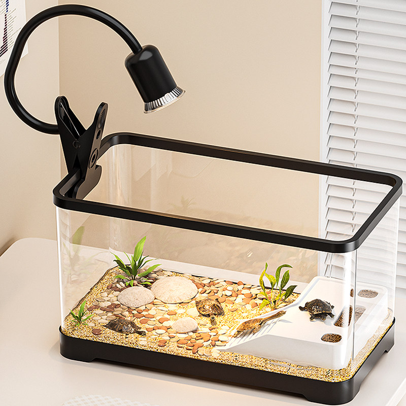 乌龟缸新款家用小型乌龟饲养缸爬台亚克力生态可排水鱼缸客厅底部