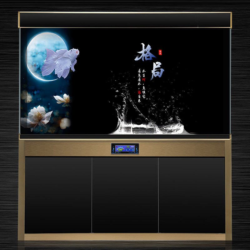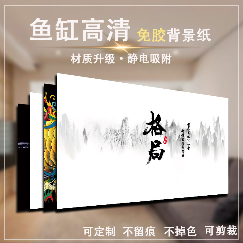 淘宝鱼缸贴纸背景黑色背景画高清格局鱼缸壁纸免胶外贴静电贴背景纸画
