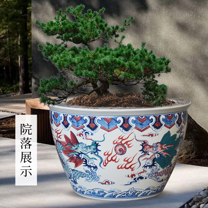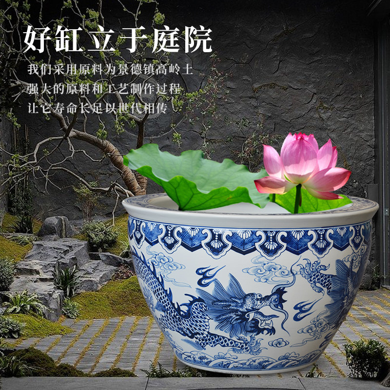 景德镇陶瓷鱼缸大号,采用传统手工拉坯与釉下彩绘工艺精制而成,胎质细腻,釉色温润如玉。器型典雅大气,兼具实用与观赏价值,适合作为庭院水景缸、客厅书房摆件,或养植荷花、睡莲等水生植物,营造清雅禅意氛围。缸体宽大敞口,利于植物生长与水体循环,亦可搭配锦鲤共赏,动静相宜。部分款式融入书画卷轴元素,缸身绘有山水、花鸟或诗词,宛如立轴画卷,文化气息浓厚。无论是中式庭院、茶室雅居,还是现代家居空间,皆能提升格调,展现东方美学韵味,是收藏、馈赠与装饰的理想之选。
