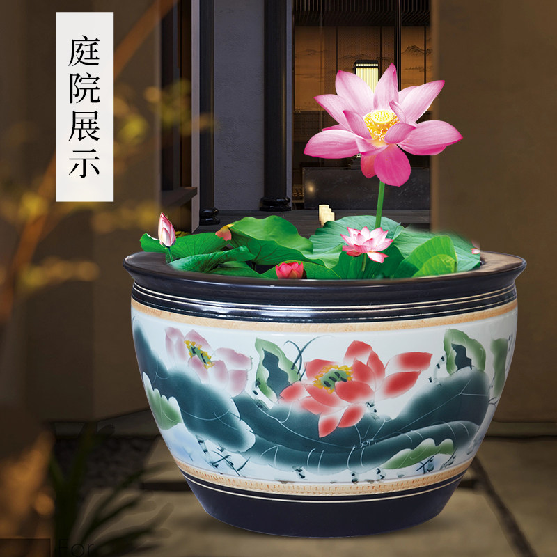 淘加高大型陶瓷鱼缸睡莲碗莲水培缸绿植插花客厅造景盆阳台庭院蓄水