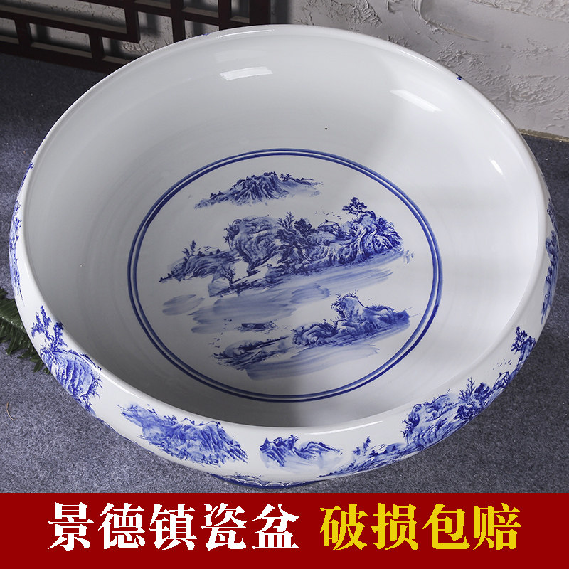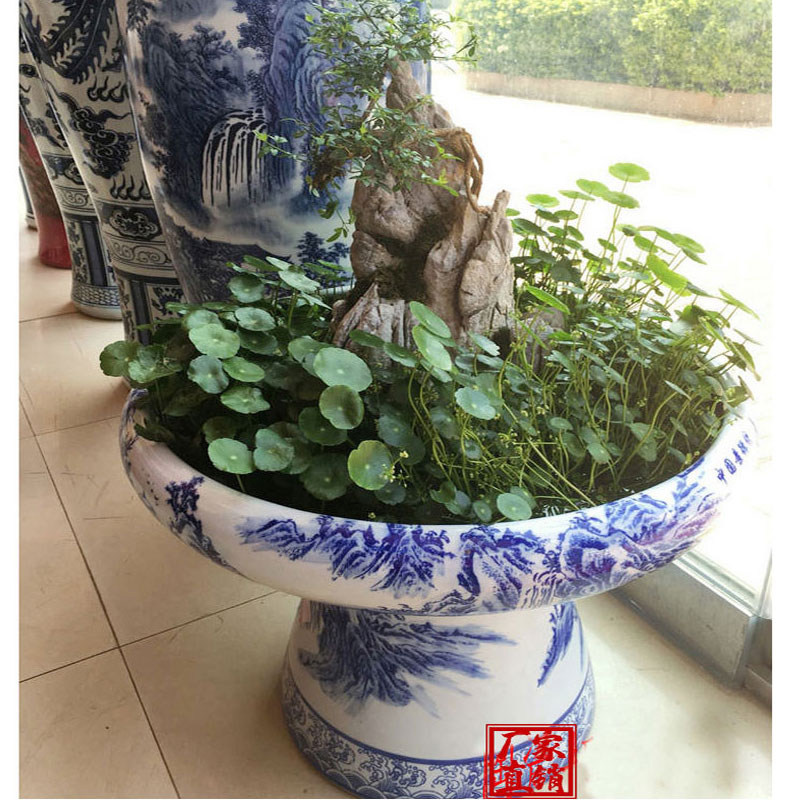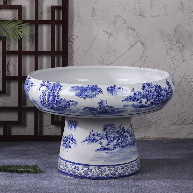 天猫景德镇陶瓷盆落地立柱式鱼缸特大号金鱼缸睡莲碗莲荷花盆锦鲤室外
