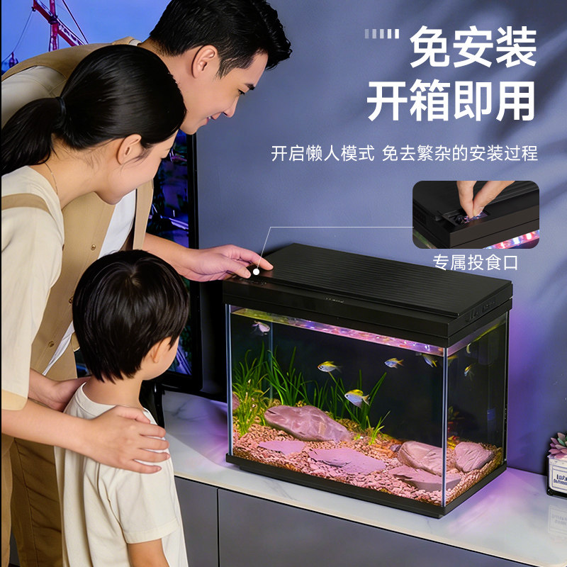 天鱼缸客厅家用2025新款过滤制氧一体专业造景金鱼斗鱼小型生态缸