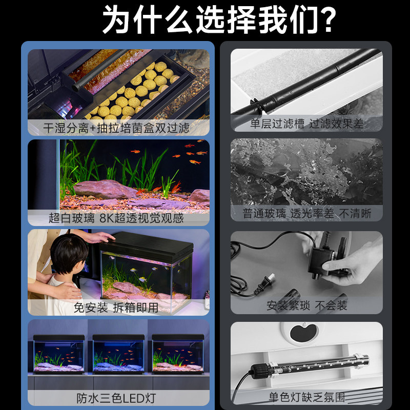 天猫鱼乐多超白鱼缸桌面过滤制氧一体机自循环客厅家用免换水水族箱