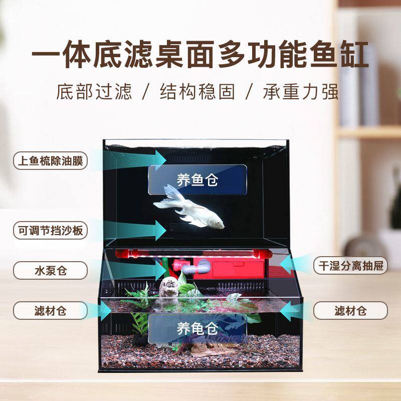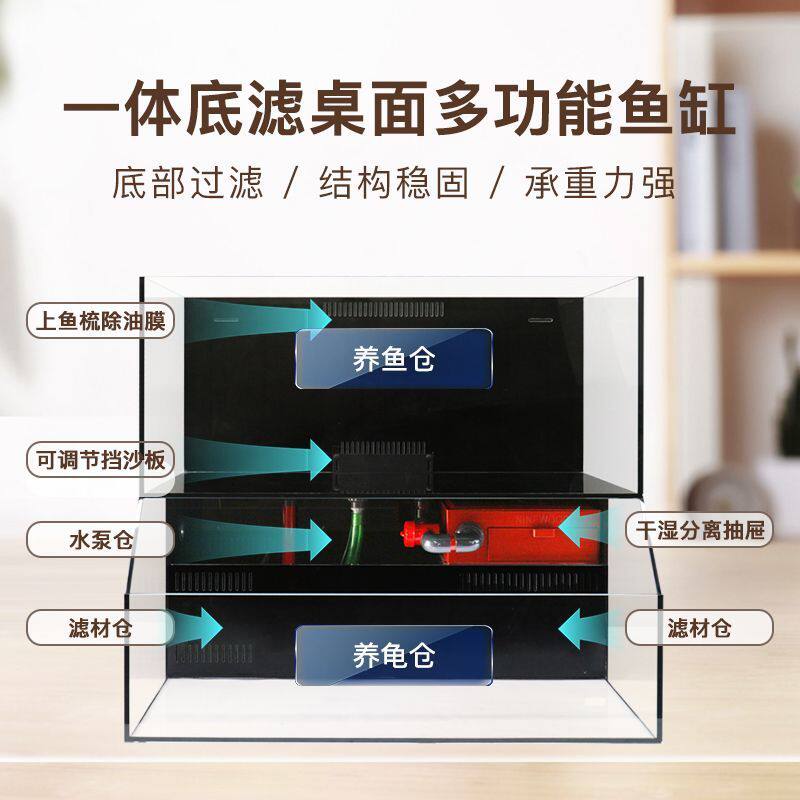 淘宝北名久物萤火虫双层loft一体式底滤两层金晶超白桌面鱼缸龟缸混养