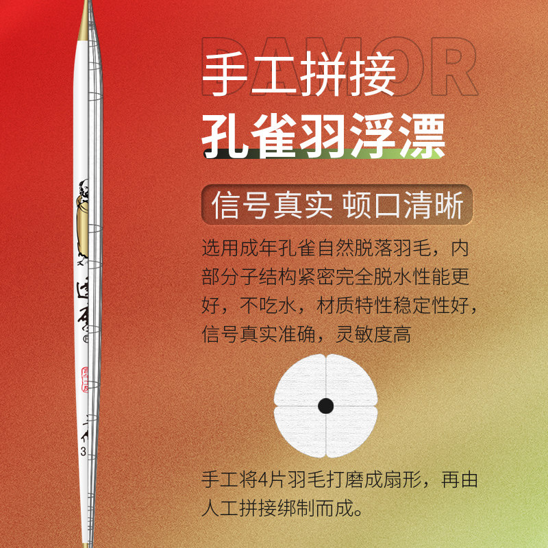 天猫达摩浮漂KC空心软尾鲫鱼浮标4片孔雀羽加粗醒目高灵敏滑口鱼鱼漂