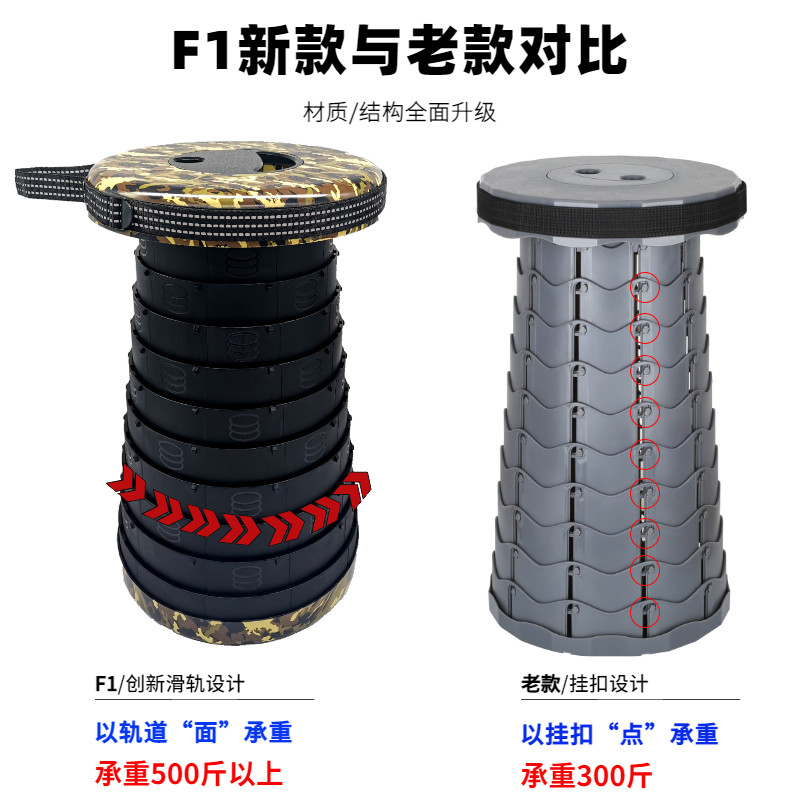 天猫户外便携网红折叠凳伸缩椅子野营钓鱼排队地铁马扎F1迷彩升级新款