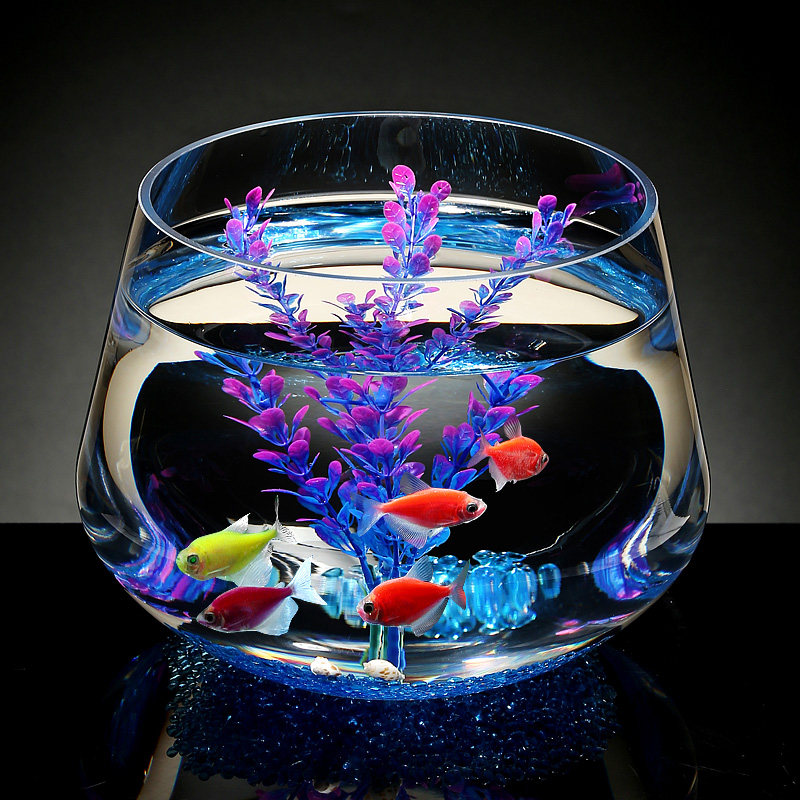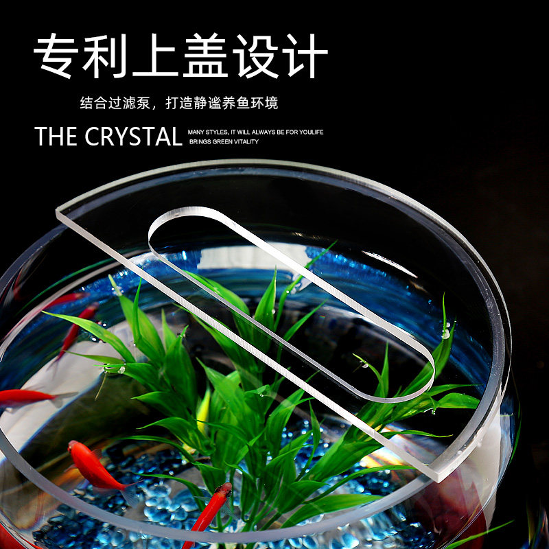 淘宝加厚玻璃圆形小鱼缸造景生态招财玻璃金鱼缸办公桌桌面过滤水循环