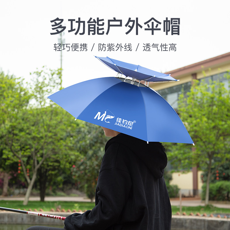 佳钓尼新款伞帽头戴式雨伞头戴式雨伞双层太阳伞帽子钓鱼头顶帽子