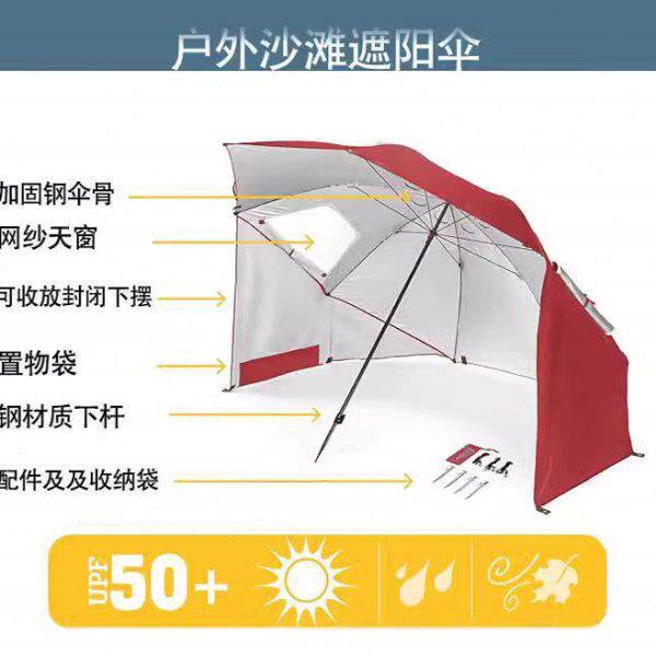 淘宝户外遮阳伞沙滩伞便携海边露营多功能钓鱼带网纱窗口两用野营防风