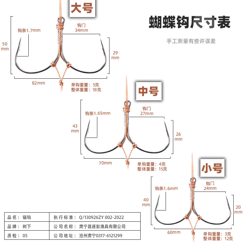 淘宝手工锚鱼蝴蝶钩锚鱼钩专用两爪大号刀锋蝴蝶串钩线组套装钓鱼锚钩