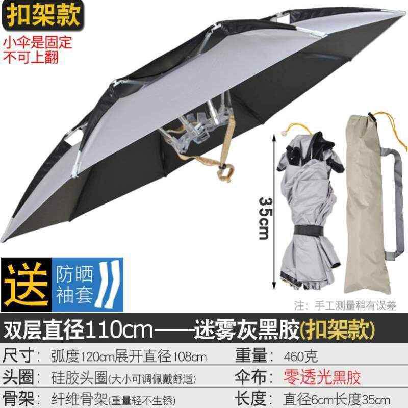淘佳钓尼新款伞帽头戴式雨伞头戴式雨伞双层太阳伞帽子钓鱼头顶帽子