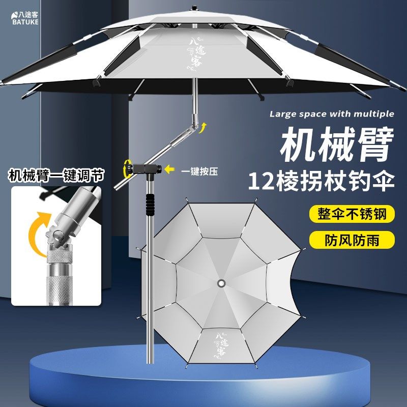 淘宝12棱大钓伞双万向手杖伞加w厚黑胶遮阳户外伞防暴雨杆不锈钢钓鱼