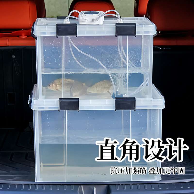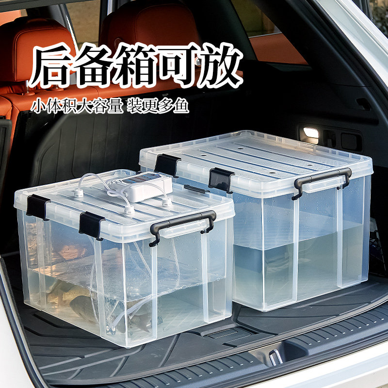 天猫野钓装鱼桶透明户外黑坑海鲜水产活鱼箱运输车载密封收纳养鱼箱