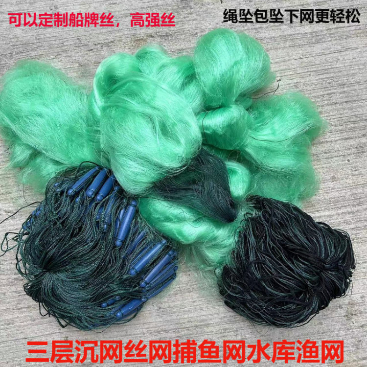 淘绿丝三层浮网200米包坠鱼网粘网渔网柔丝捕鱼网水库网绳坠6指8指