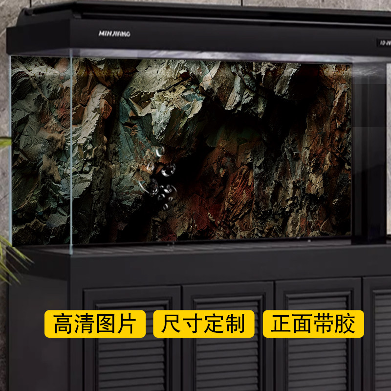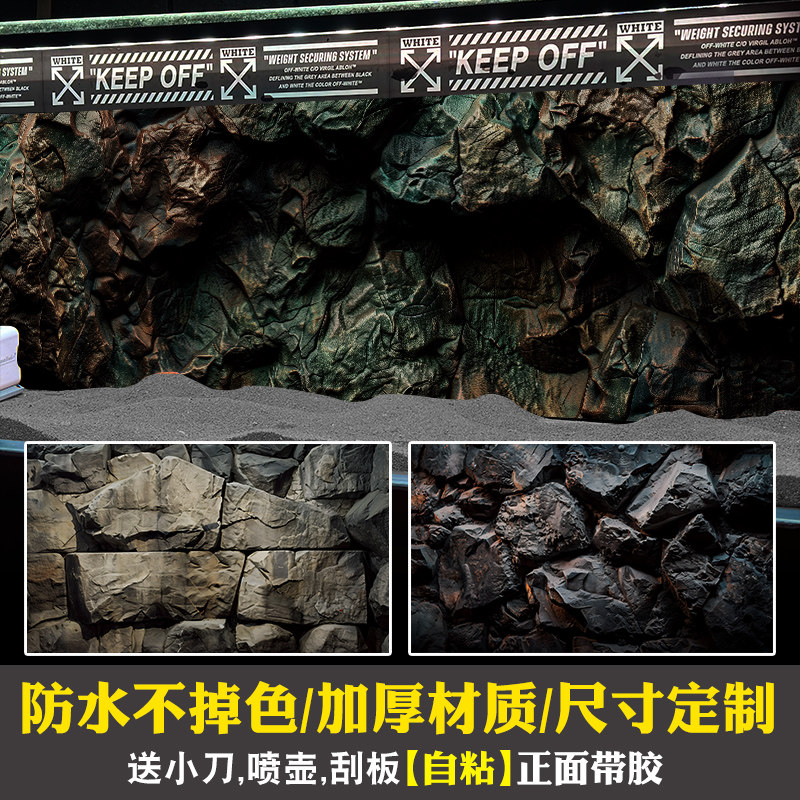淘宝鱼缸背景贴纸爬宠饲养箱乌龟岩石石头3d立体造景贴画壁纸正胶