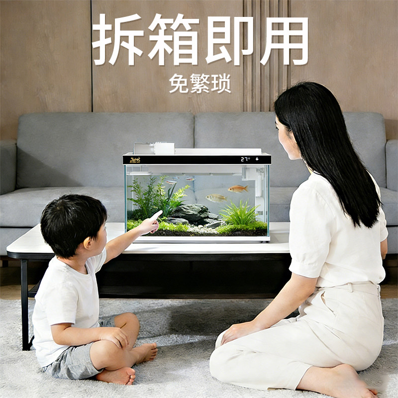 天鱼缸客厅家用2025新款过滤制氧一体专业造景金鱼斗鱼小型生态缸