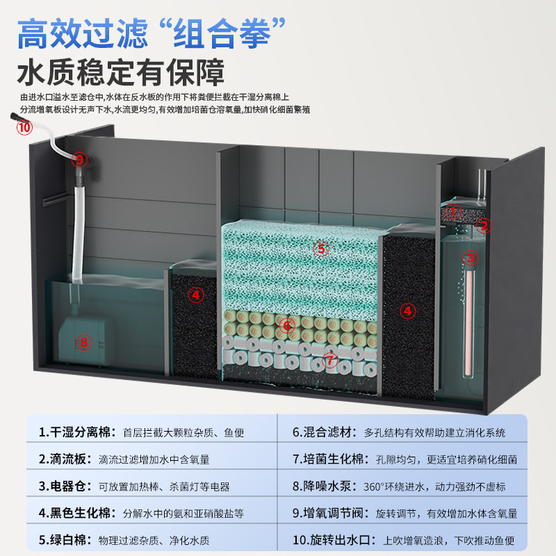 淘森森鱼缸过滤器壁挂过滤桶小型静音外挂式除油膜净水过滤循环系统