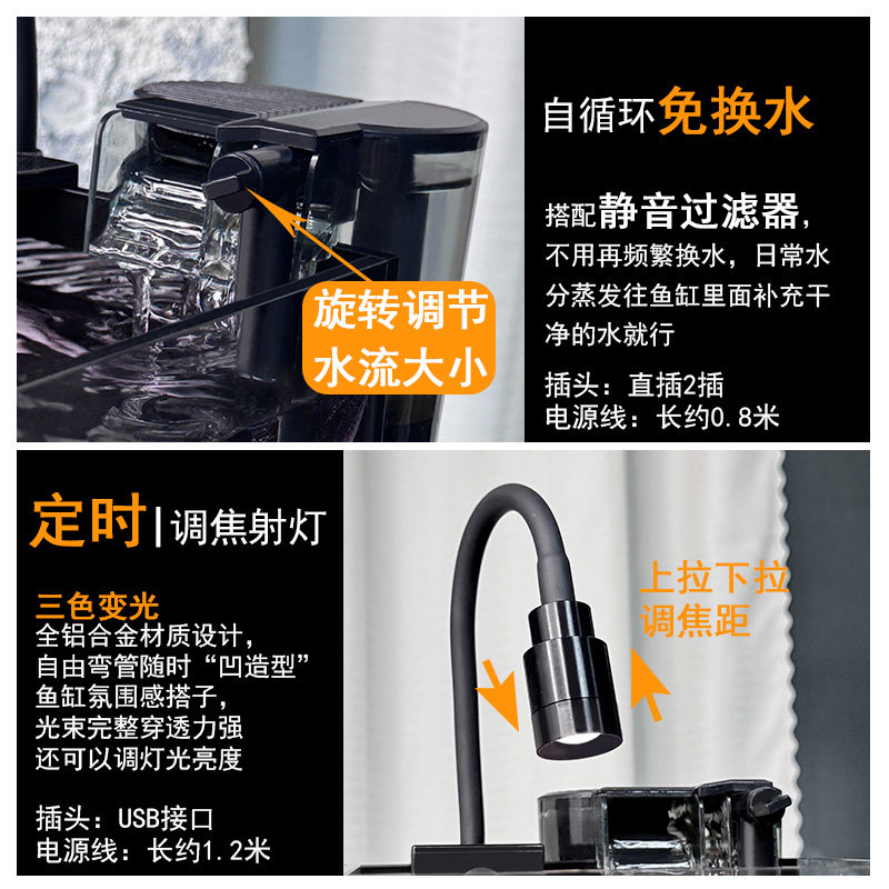 鱼乐多超白鱼缸桌面过滤制氧一体机自循环客厅家用免换水水族箱