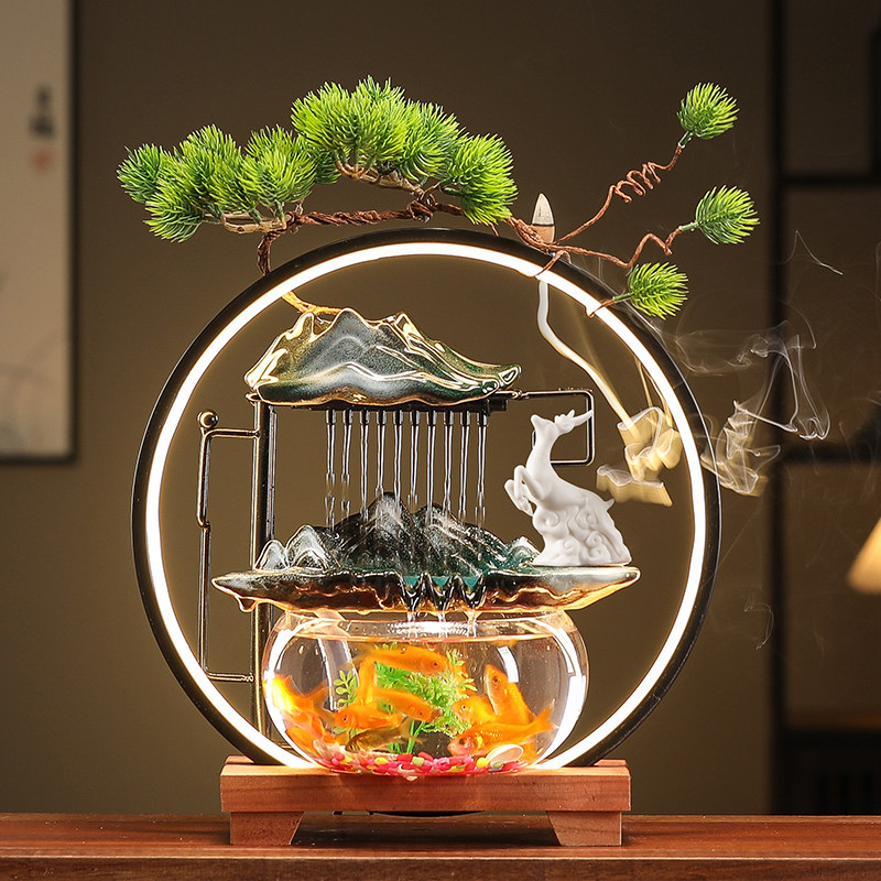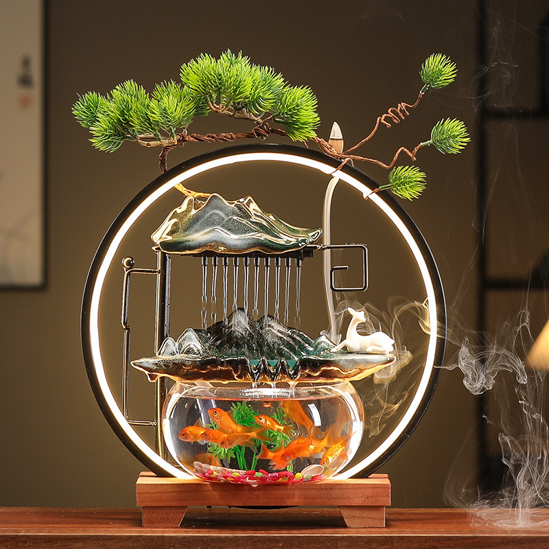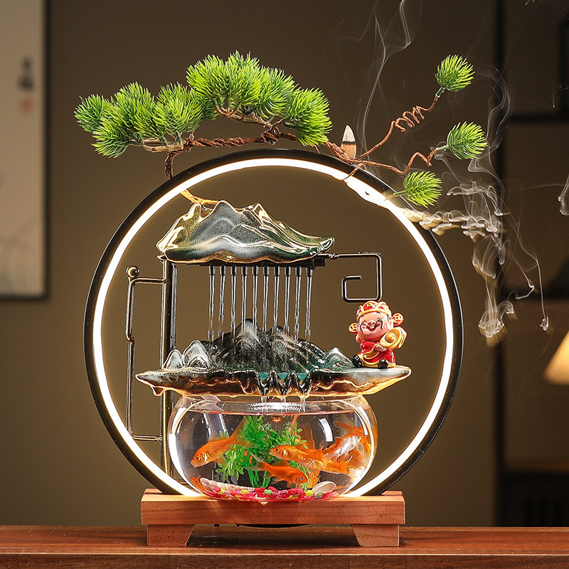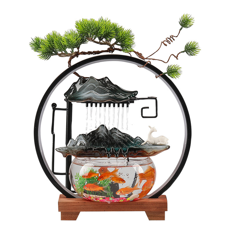淘宝金鱼缸圆形客厅小型桌面超白玻璃陶瓷循环增氧创意流水喷泉养家用