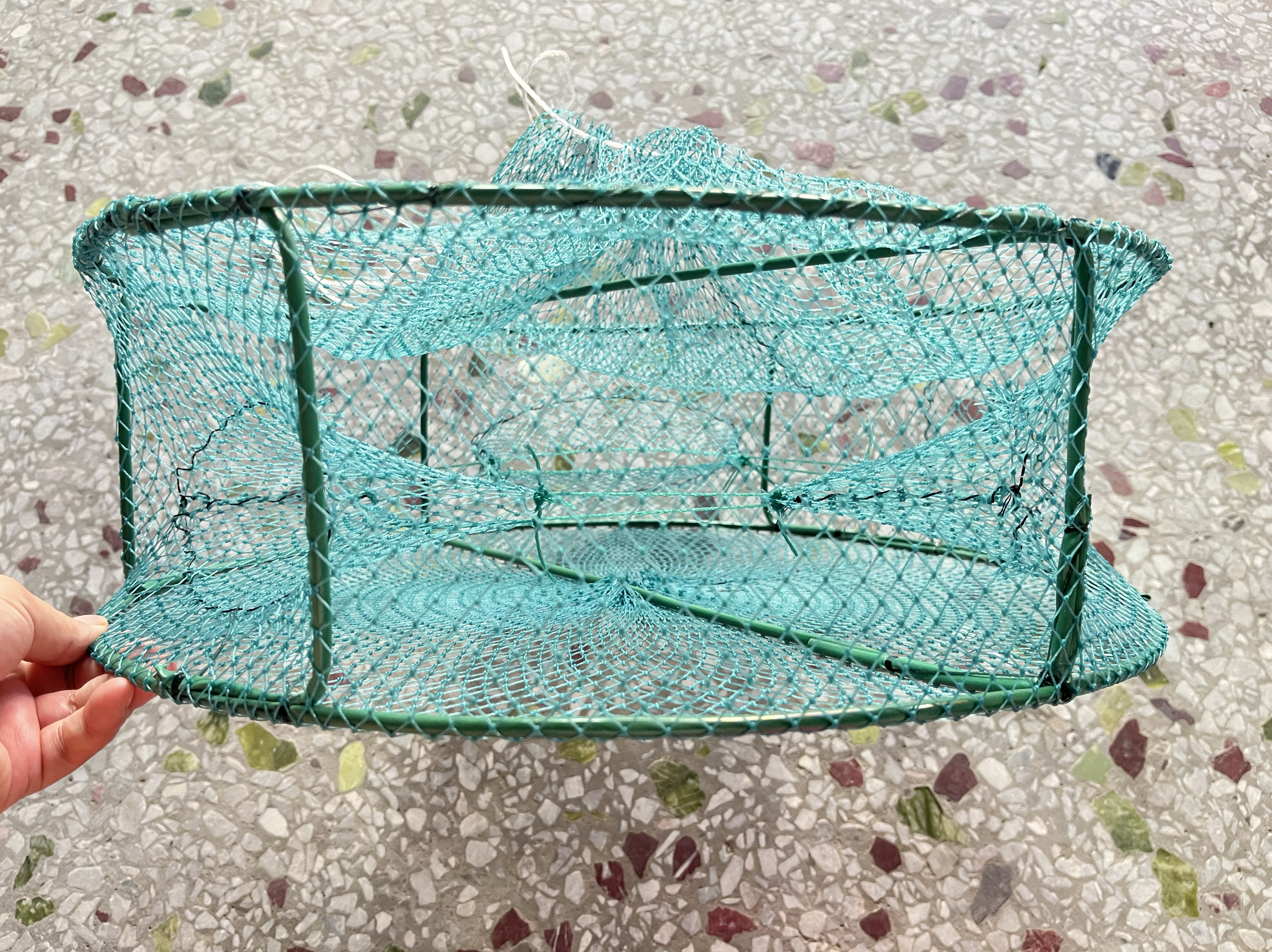 手工鱼笼是一种传统渔具,包括捕鱼笼、螃蟹笼、泥猛笼、金鼓鱼笼等多种类型,采用竹篾、藤条或环保塑料编织而成,结构精巧、透水性好。其设计利用鱼类、蟹类的趋光性与觅食习性,通过入口漏斗结构实现“易进难出”。适用于淡水或浅海捕捞,对生态破坏小,可持续性强。不同笼具针对特定鱼种优化,如螃蟹笼侧重防逃设计,金鼓鱼笼则注重诱饵布局。手工制作赋予其耐用与灵活性,广泛用于沿海渔村与溪流捕捞,兼具实用性与文化传承价值,是传统渔业智慧的体现。