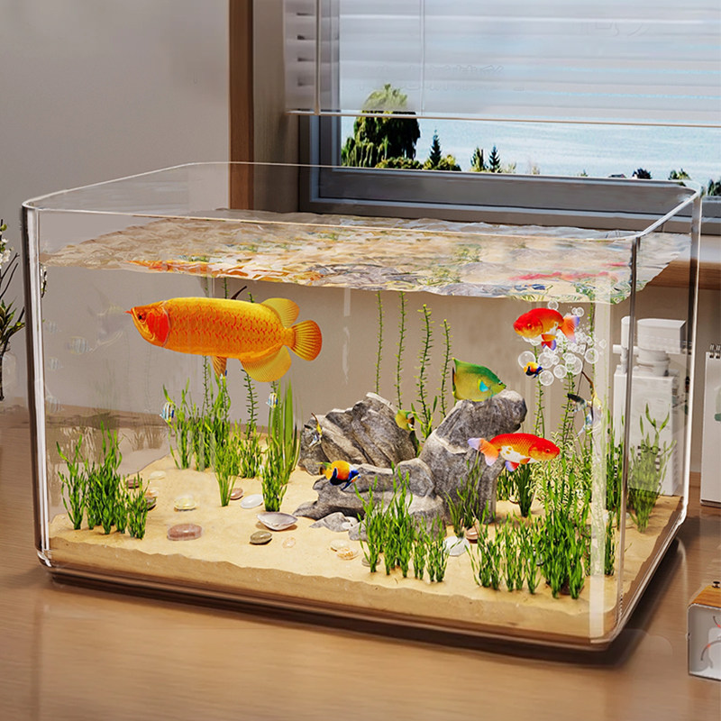 淘鱼缸客厅小型家用水族箱有机玻璃自循环高透亚克力桌面金鱼乌龟缸