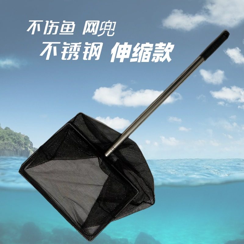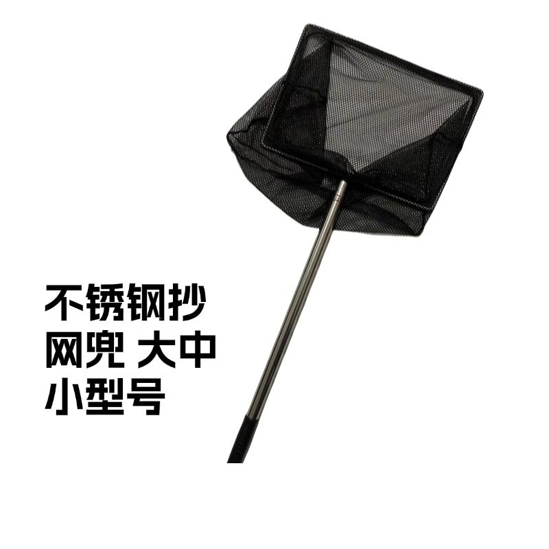 淘鱼捞网兜超密网小号大号不锈钢伸缩杆手工3d方形圆形鱼缸斗鱼鱼捞