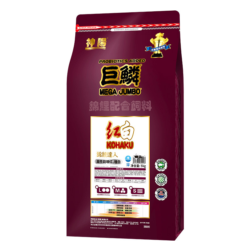 神阳巨鳞比赛级锦鲤饲料,专为高端观赏锦鲤研发,采用优质进口原料科学配比,富含天然螺旋藻、虾青素及多种维生素,有效促进体色鲜艳、鳞片光亮,显著提升绯盘红润度与墨质深邃感。其高蛋白配方助力锦鲤健壮生长,增强免疫力,减少疾病发生。颗粒结构稳定,入水不易散失,减少水体污染,适合比赛级锦鲤日常喂养。无论是增色、增体还是提升整体观赏价值,神阳巨鳞饲料都能满足专业玩家与资深爱好者的严苛需求,是打造顶级锦鲤的必备之选。