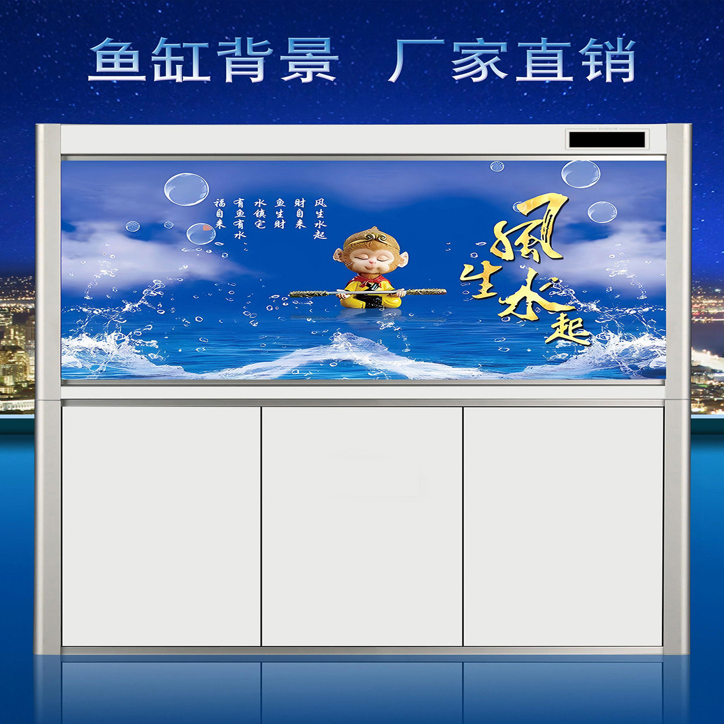 淘宝鱼缸贴背景纸高清定制悟空风生水起外贴水族防水造景装饰粘贴图画