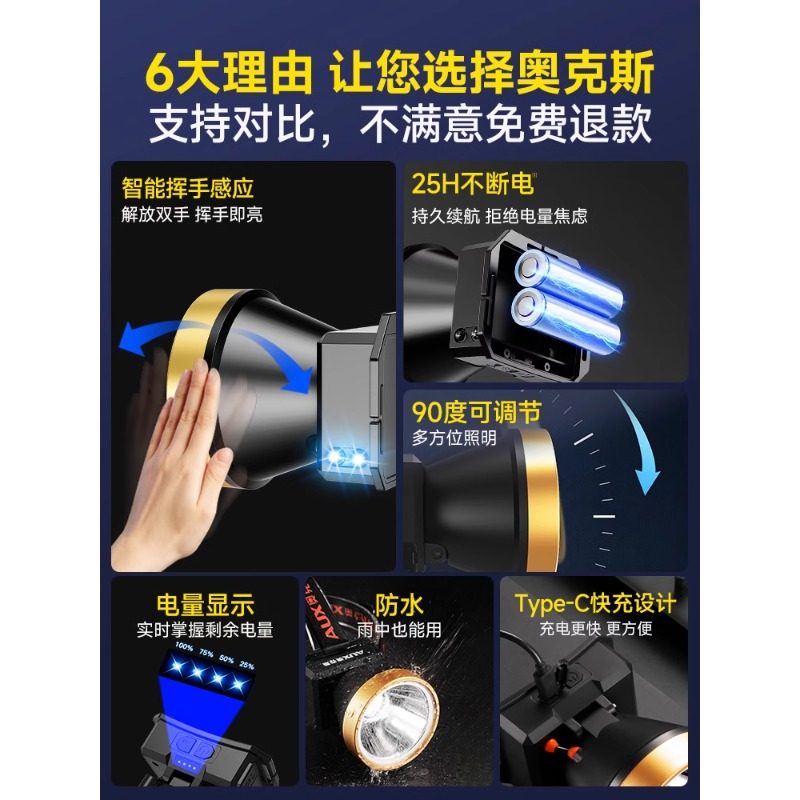 天猫奥克斯头灯强光超亮充电续航超长锂电矿灯夜钓鱼感应头戴式照明灯