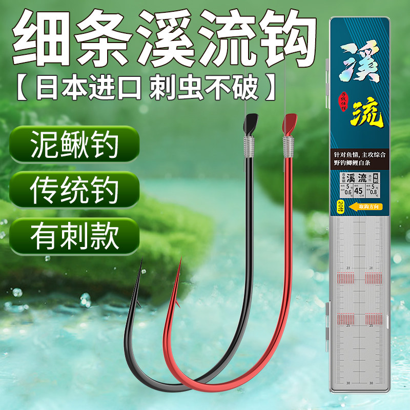 淘溪流鱼钩细条日本进口钩筏钓钩挂玉米翘嘴矶杆钓鱼钩锋利超细超硬