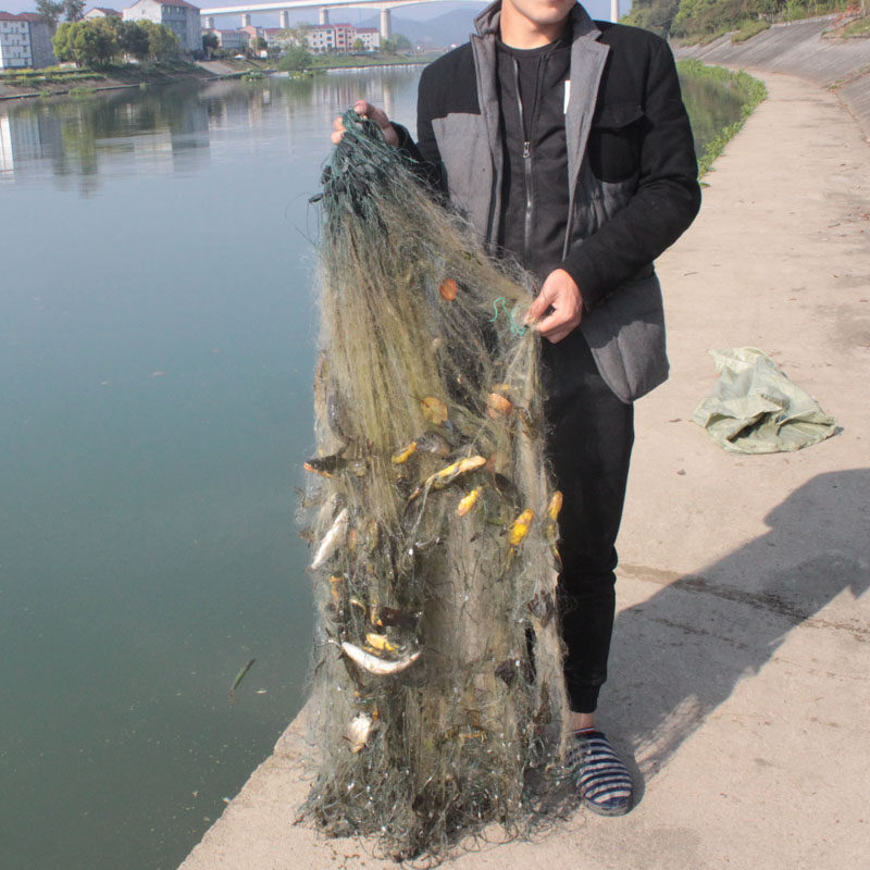 淘三层渔网粘网捕鱼网加重2米3米4指5指100米绳坠包坠沾网丝网黏网