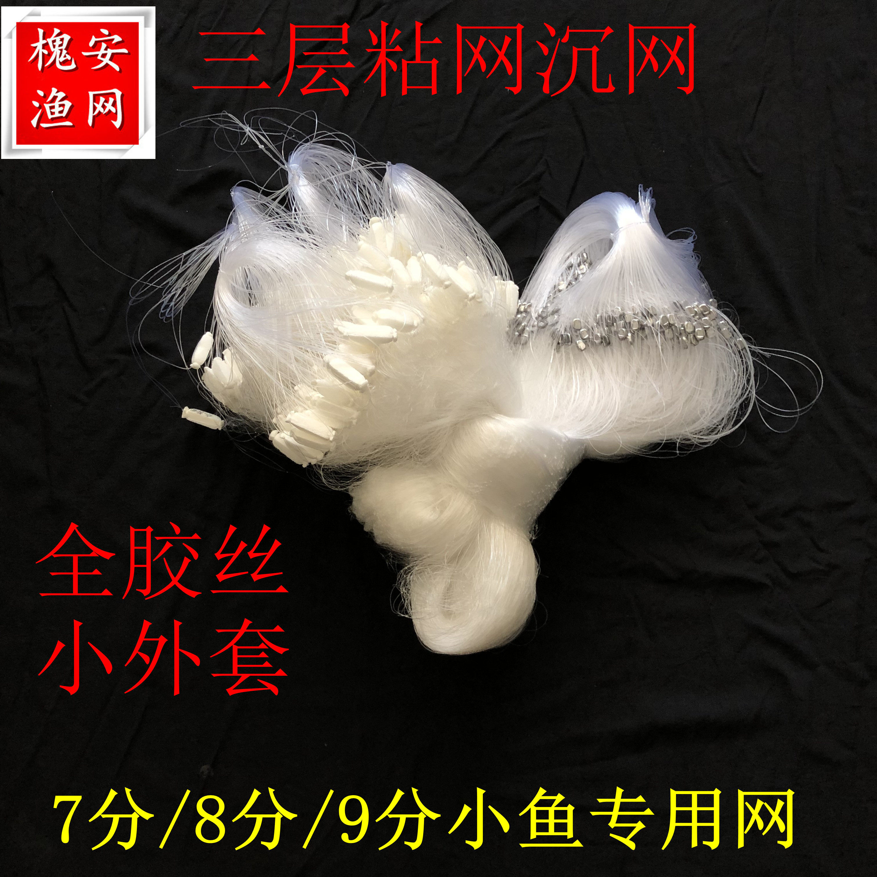 淘宝三层小鱼网沉网粘网小外套全胶丝加重一指抓小白条柔丝沾网捕鱼网