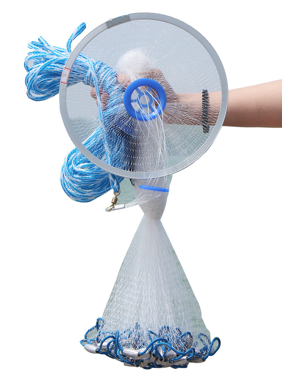 美式飞盘手抛网是一种轻便高效的捕鱼工具,结合了传统旋网与现代设计理念。采用高强度单丝尼龙材质,网眼均匀,抗拉耐磨,搭配轻质铝圈边缘,确保抛投时展开顺畅、入水迅速。其飞盘式结构使初学者也能轻松掌握抡网技巧,实现远距精准撒网,特别适合捕捞白条、鲫鱼等小型鱼类。网体落水后自动下沉,覆盖面积大,收网迅速,有效提升捕鱼效率。整体设计便携耐用,适用于湖泊、河流、池塘等多种水域,是休闲垂钓与户外捕鱼的理想选择,兼顾实用性与趣味性。