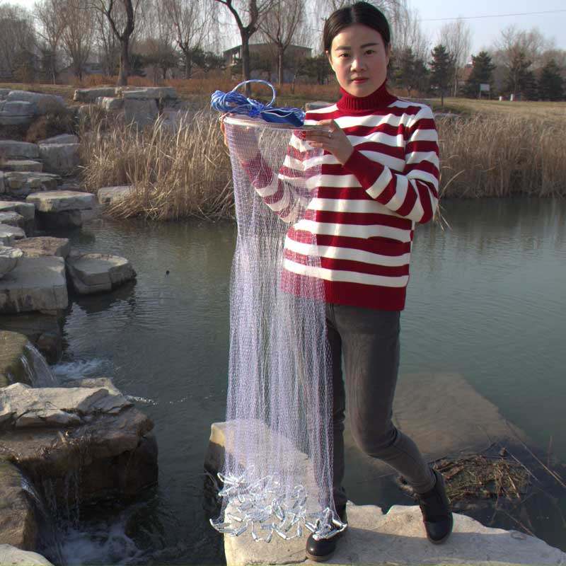 淘宝美式飞盘手抛网撒网捕鱼网抡网白条旋网自动打鱼渔网铝圈单丝渔网