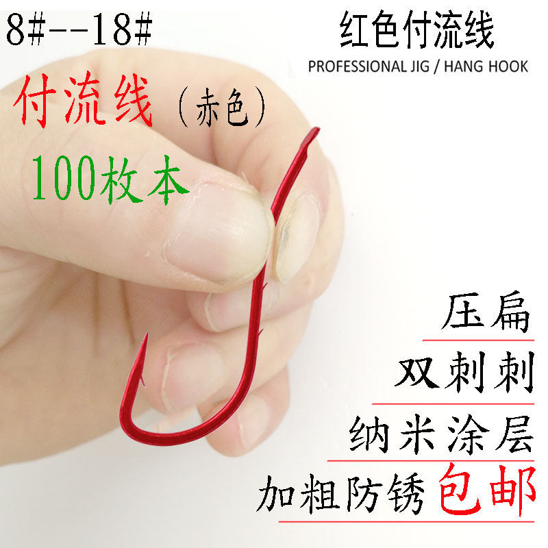 淘宝100枚红色付流线钓鱼钩双背刺梭鱼鲈鱼钩红虫软饵钩有倒刺彩色钩