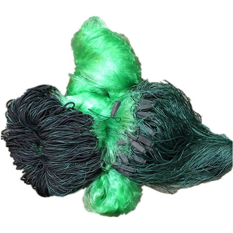 绿丝渔网挂网粘网丝网捕鱼网单层浮网鱼网三层沉网100米沾网