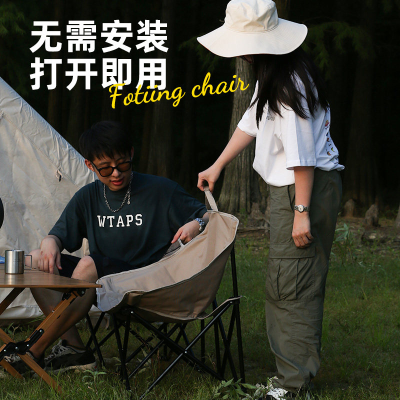 露营月亮椅户外折叠椅子凳钓鱼沙滩躺椅野餐野外成人坐躺便携式