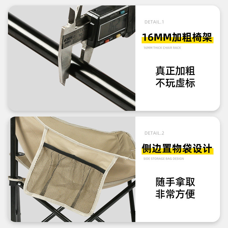淘户外折叠椅子加高靠背月亮椅可调节便携式露营椅子钓鱼椅野营躺椅