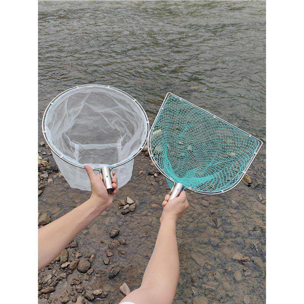 淘三角圆形抄网头可折叠实心不锈钢圈纯手工抓鱼网兜大物抄鱼捞鱼网