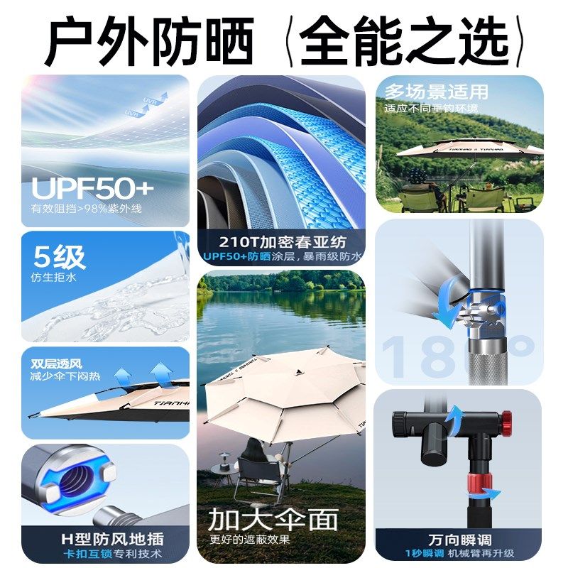天渔之源新型钓鱼伞雨伞户外露营大钓伞2024新款拐杖防晒专用遮阳伞
