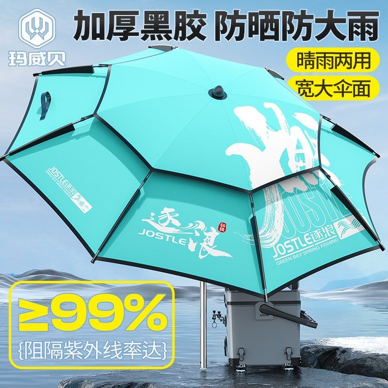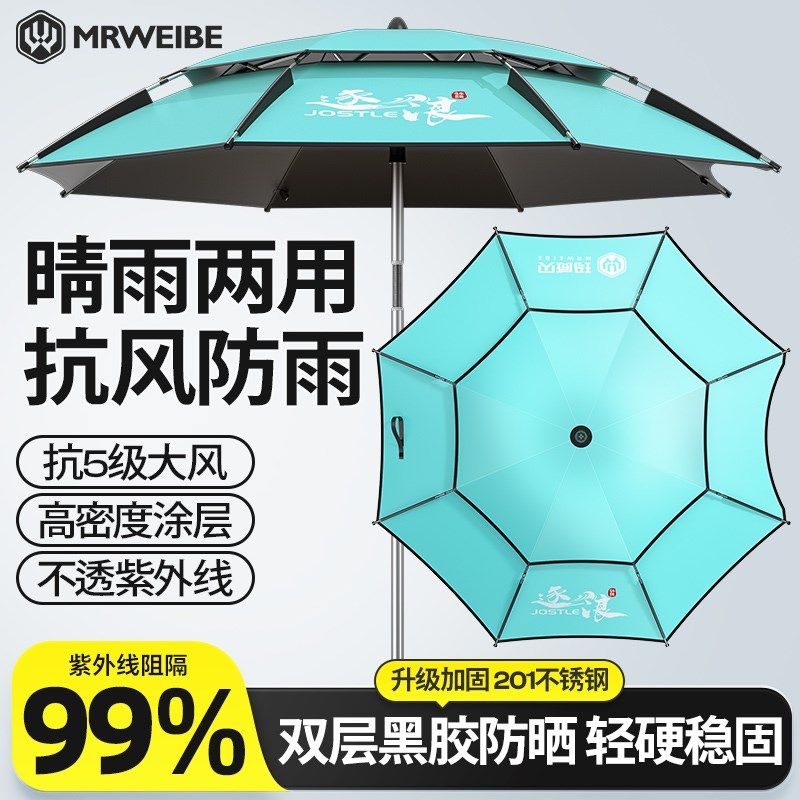 淘2025新款防暴雨钓鱼伞大钓伞2.4万向加厚雨伞防风遮阳防雨垂钓伞
