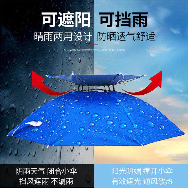 淘宝雨伞帽双层头戴式头顶带式帽伞遮阳防晒折叠户外大号钓鱼雨伞帽