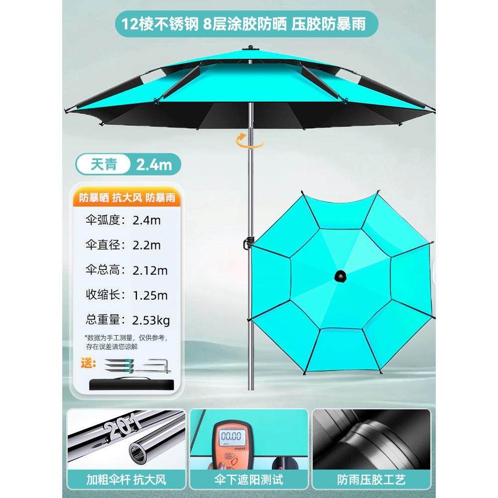 淘2025新款防暴雨钓鱼伞大钓伞2.4万向加厚雨伞防风遮阳防雨垂钓伞
