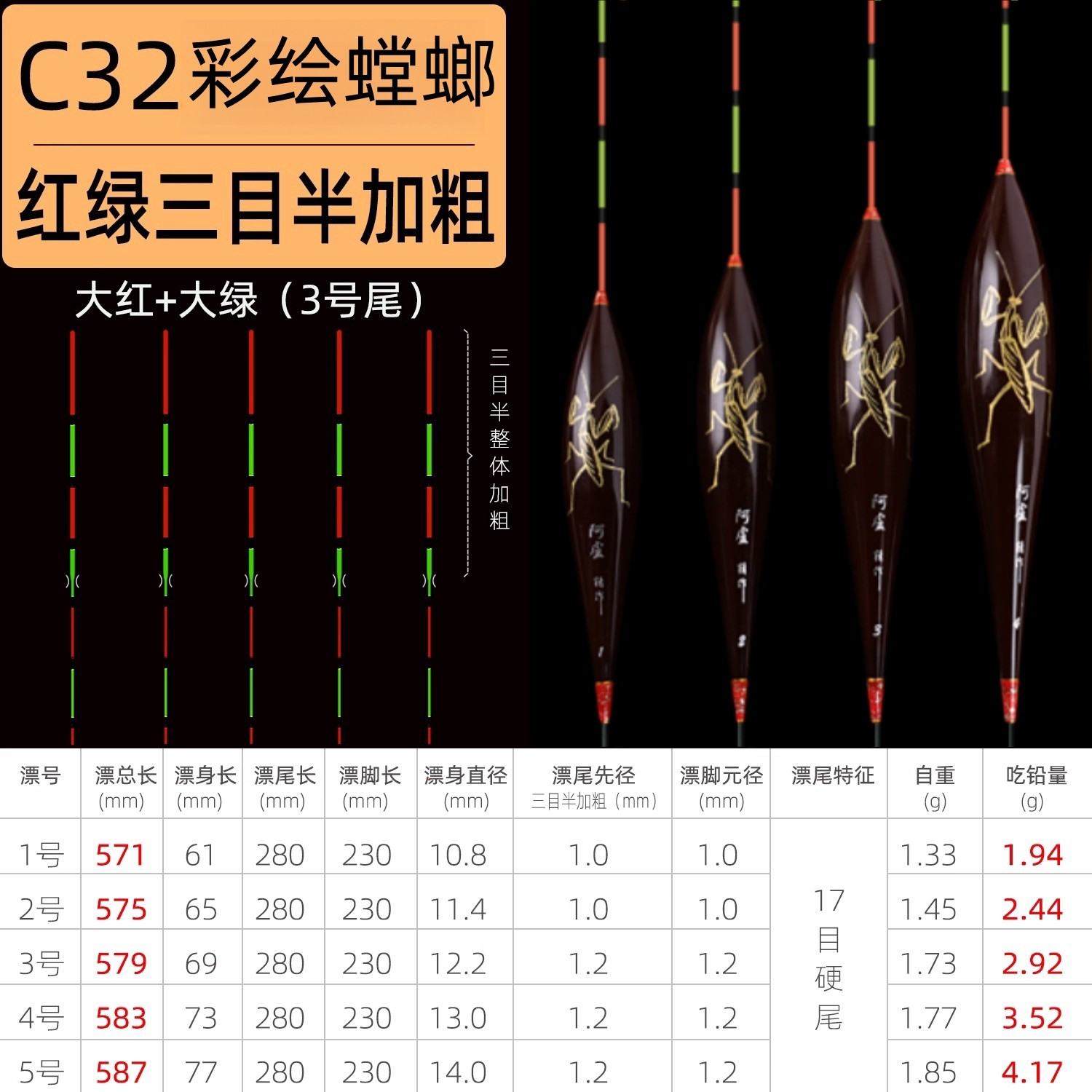 淘宝阿卢浮漂鱼漂C32高端灵敏鲫鱼鲤鱼草鱼青鱼翘嘴大物加粗硬尾鱼漂