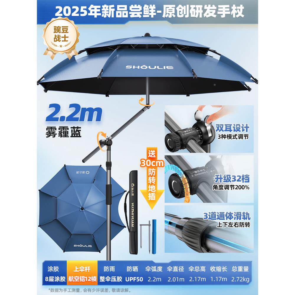 淘探险者钓鱼伞户外专用大钓伞多向防雨太阳伞防晒遮阳雨伞万向拐杖
