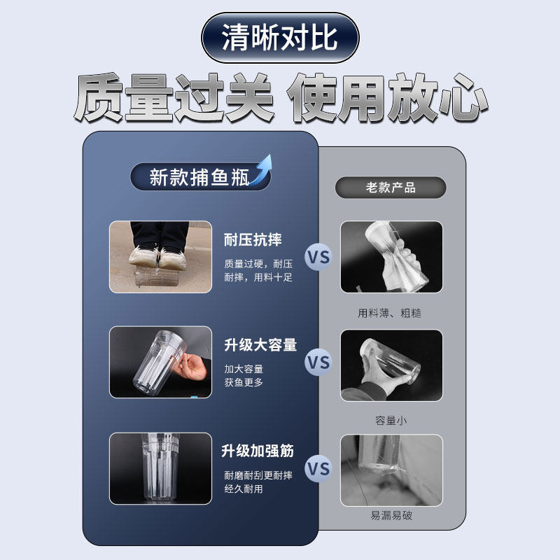 儿童户外捕鱼瓶、倒须抓鱼瓶、鱼笼虾笼是专为亲子户外活动设计的趣味捕鱼工具,安全环保且操作简单。采用透明或彩色食品级塑料制成,轻便耐用,适合孩子独立使用。独特的倒须结构让鱼虾易进难出,提升捕获成功率。家长与孩子可共同在溪流、浅滩或池塘边体验自然乐趣,锻炼观察力与动手能力。无需电源,纯物理捕捞,既环保又充满探索感。配套提手和挂绳设计,方便携带与收纳。是培养孩子热爱自然、增进亲子关系的理想户外神器,让每一次捉鱼都成为难忘的童年回忆。
